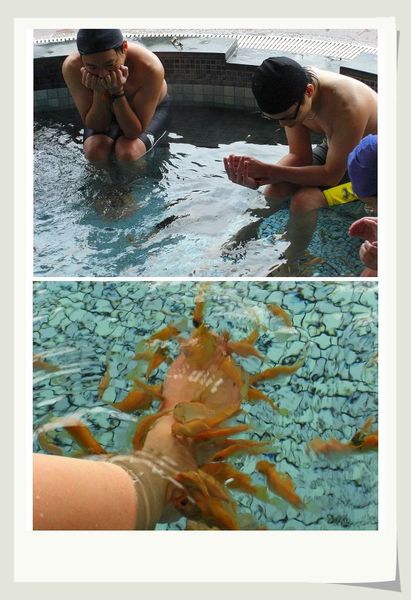 被小魚咬的感覺是有癢又痛..看到一群魚衝過來要來咬腳,,感覺真的有點恐怖~~~看大家的表情有多詭異..哈哈