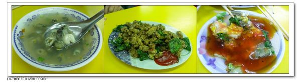 把車子停好,我們跟著人群走到了天后宮前,廟前面一堆賣蚵仔的小店面,我們隨意挑了一家就走進去,點了一盤炸蚵仔,蚵仔煎,蚵仔湯~~都是蚵仔~~