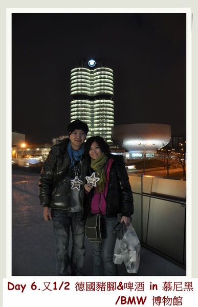 逛完天也黑了..黑暗中的BMW總部大樓更有氣勢~
