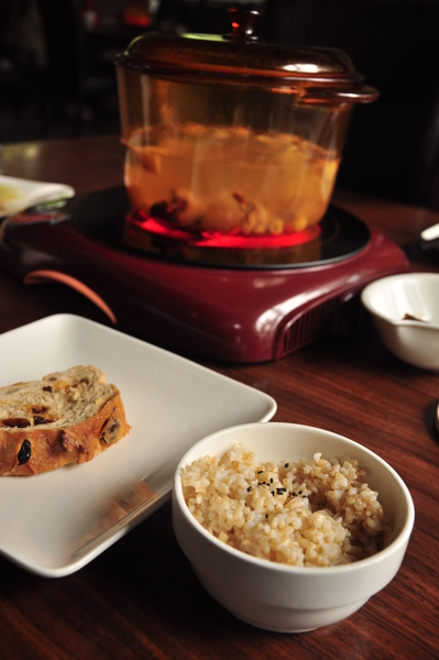 這邊的附餐非常豐富,有一鍋包含有蓮藕,蘿蔔,甘蔗,枸杞等等,滿滿新鮮食材的養生鍋
