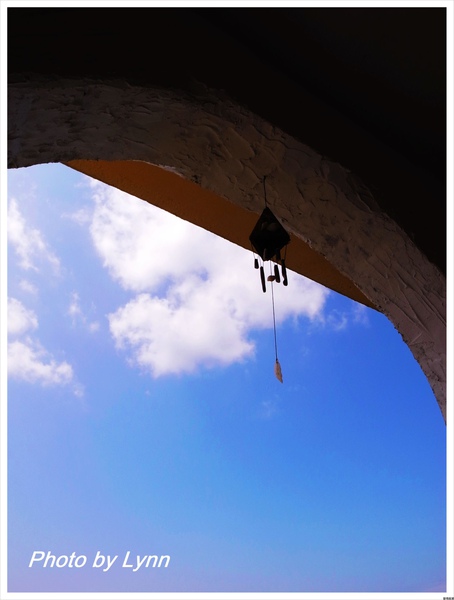 艷陽下搖晃的風鈴以藍天白雲為背景