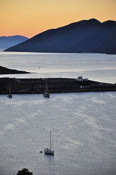太陽還完全沒升起..平靜無波的海面上停留了數艘漁船