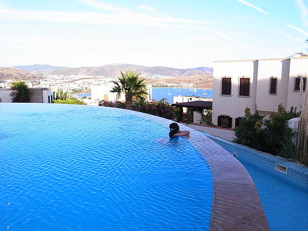 一個是早上餐廳旁,一個是位在另一邊的無邊境泳池