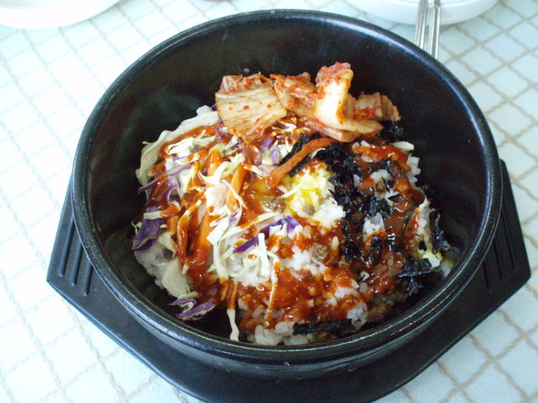 在這邊拍了一堆白癡照後~~導遊就帶我們去吃中飯囉~~今天中午吃的是石鍋拌飯~~~~看來還是改良過的台灣式石鍋拌飯比較好吃...